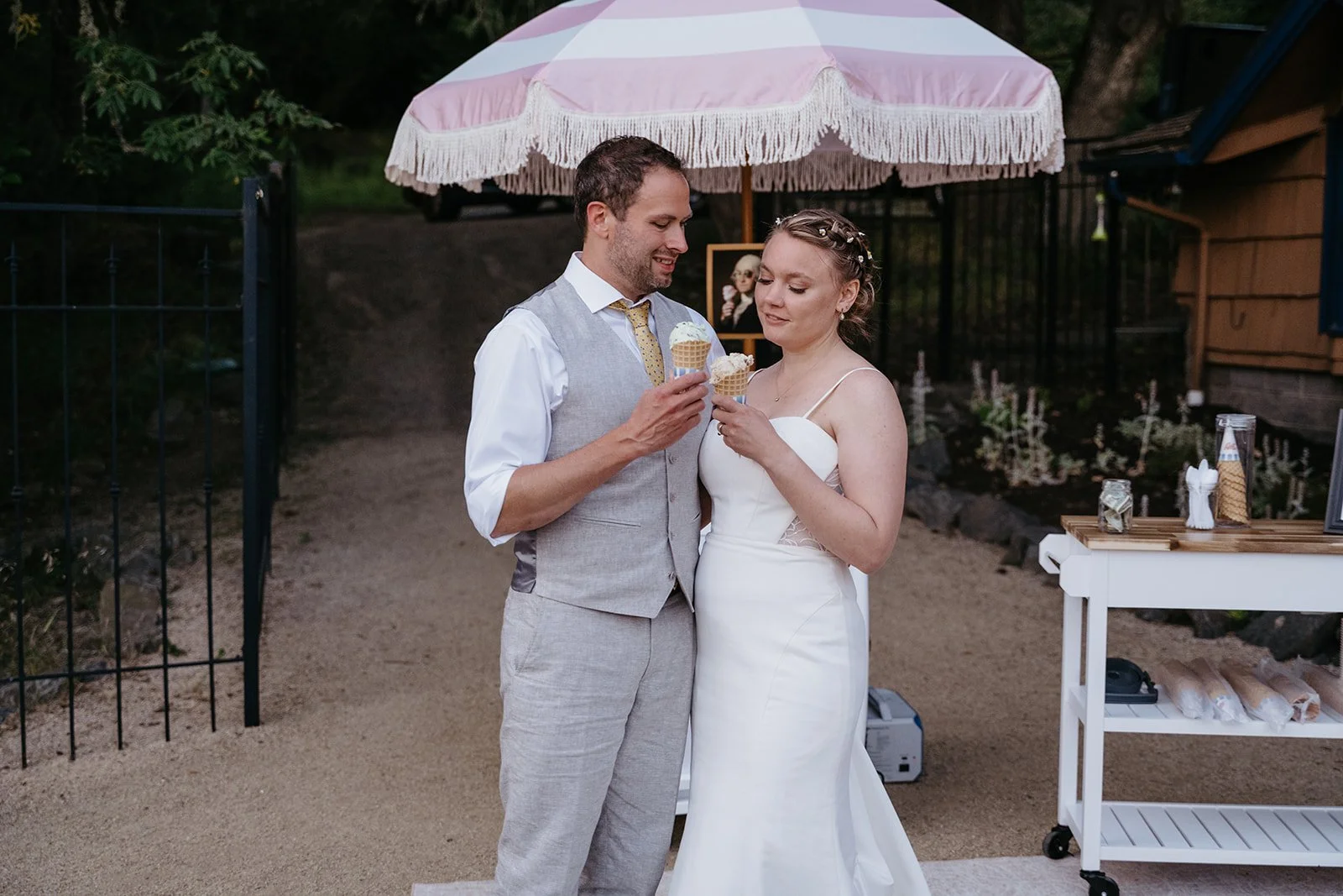 Gracie’s specializes in hand-scooped, locally-sourced ice cream from Oregon brands like Tillamook, Umpqua, and Cascade Glacier. Their mobile ice cream cart is a huge hit with wedding guests of all ages!